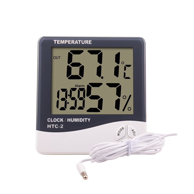 HTC-2家用多功能溫濕度計(jì),采用高精度溫濕度傳感器做測(cè)溫濕元件。產(chǎn)品外置1.5米 長(zhǎng)單溫防水探頭可進(jìn)行遠(yuǎn)距離測(cè)溫濕,可應(yīng)用于水箱等潮濕環(huán)境測(cè)溫。產(chǎn)品可同屏顯示內(nèi) 置溫濕度與外置溫度,一鍵切換顯示內(nèi)外溫度。產(chǎn)品功能有溫濕度、時(shí)間、日期同屏顯示, 12/24小時(shí)制切換,℃/℉溫度單位切換,整點(diǎn)提醒,每日鬧鐘,查看清除記憶最大最小溫 濕度值等功能。
